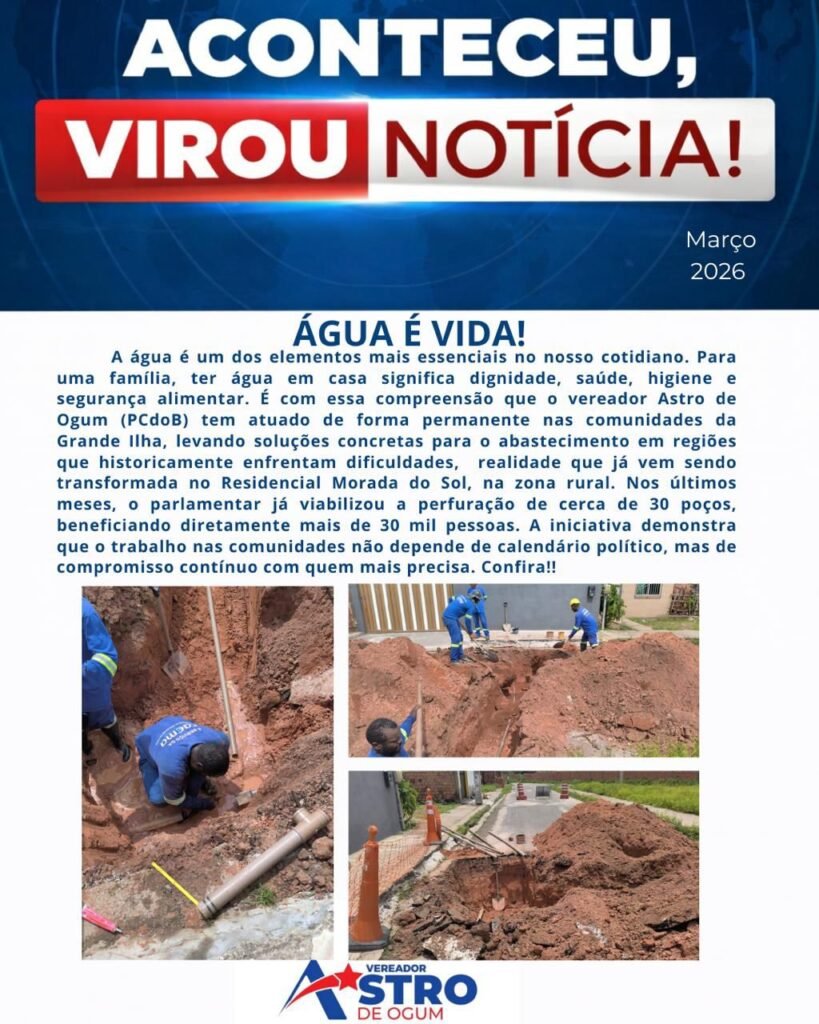 Para Astro de Ogum, garantir água para as famílias significa dignidade, saúde, higiene e segurança alimentar. Por isso, o trabalho não depende de calendário eleitoral, mas de um compromisso permanente com quem mais precisa.