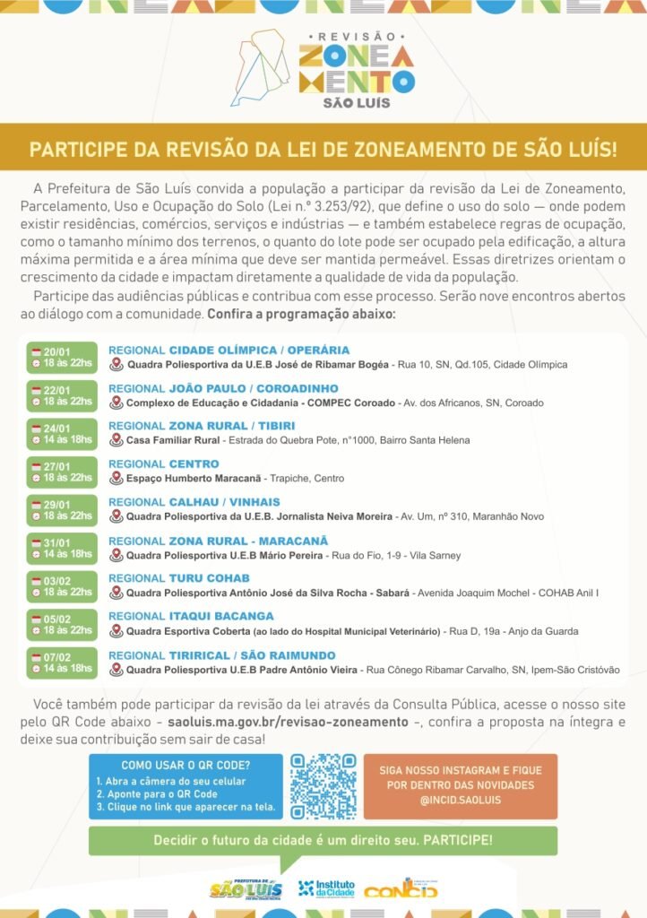 Calendário de audiências da Lei de Zoneamento de São Luís